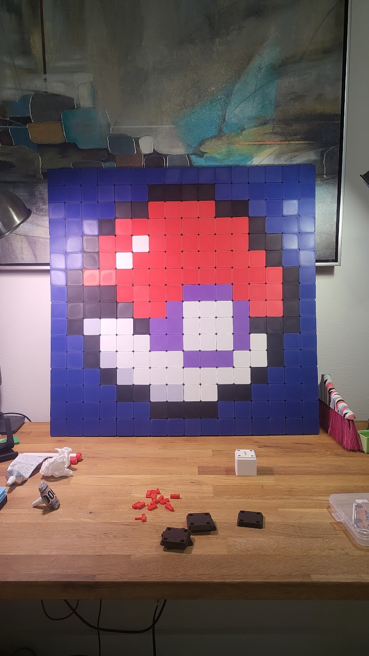 It’s now a full-blown hybrid project: 3D printed pixel tiles that snap onto a magnetic grid, backed by a custom app I built to plan designs and track filament usage. I’ve been vibing my way through it ever since — printing, coding, cursing at magnets, and dreaming up ways to make it cooler.